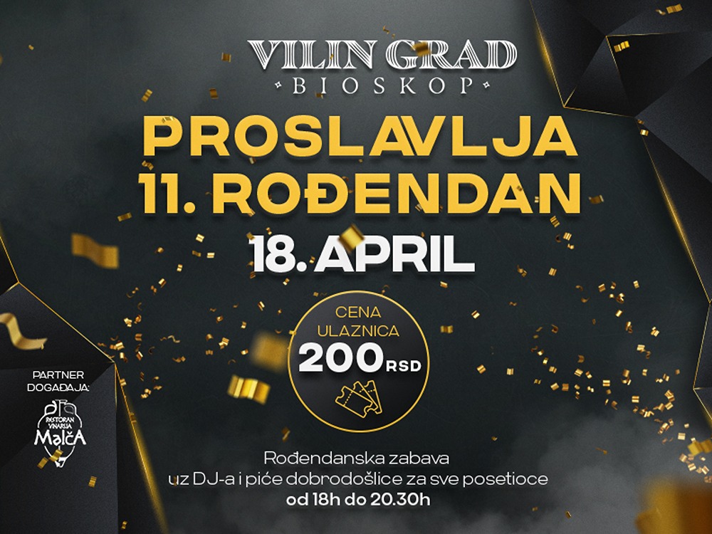 U utorak, 18. aprila, bioskop Vilin Grad proslavlja svoj 11. rođendan!