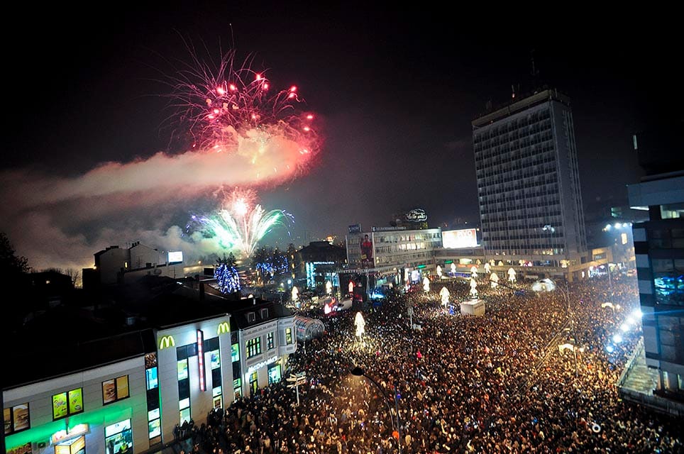 Prema nekim procenama, na trgu u centru Niša na dočeku je oko 40.000 ljudi.